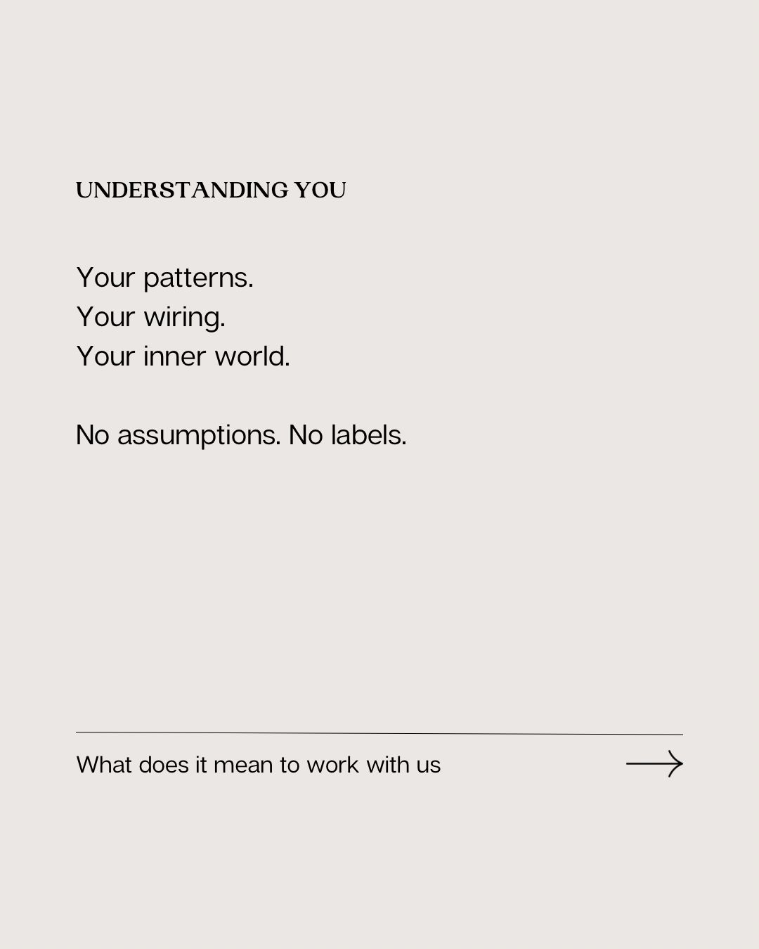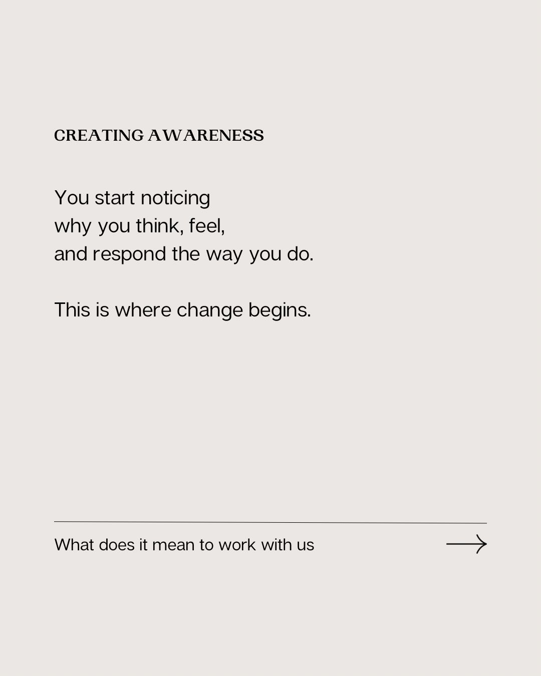 We begin by helping you become aware of your patterns, beliefs, and core values.